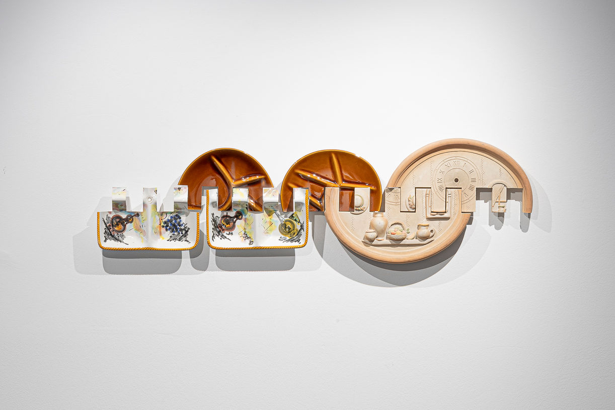 His process begins with the careful selection of discarded items, which he irreversibly alters, challenging their original function and meaning. His works often reflect on the act of containment—both physical and symbolic—while incorporating ornamental elements, social connotations, and public participation.